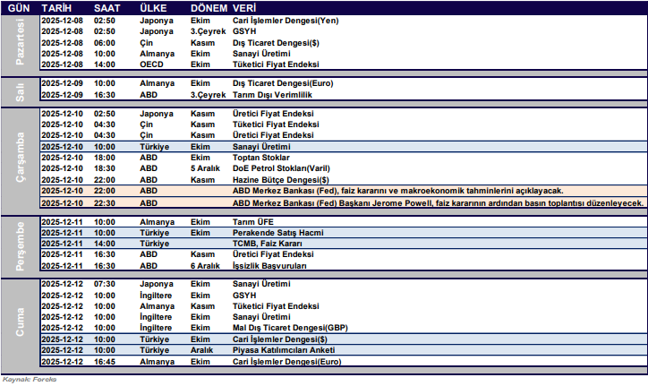 verileri takip edilecek. Çarşamba günü ABD Merkez Bankası (Fed), faiz kararını ve makroekonomik tahminlerini açıklayacak.