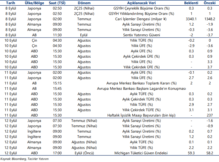 Kaynak: Tacirler Yatırım Haftalık Piyasa Takvimi
