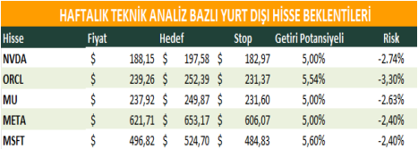 Haftalık Teknik Analiz Bazlı Yurtdışı Hisse Beklentileri