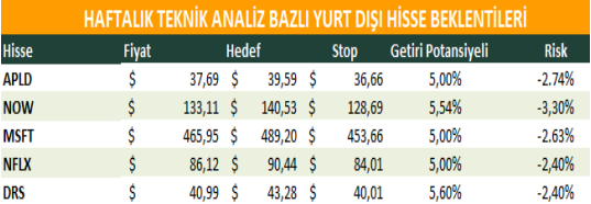 Haftalık Teknik Analiz Bazlı Yurtdışı Hisse Beklentileri