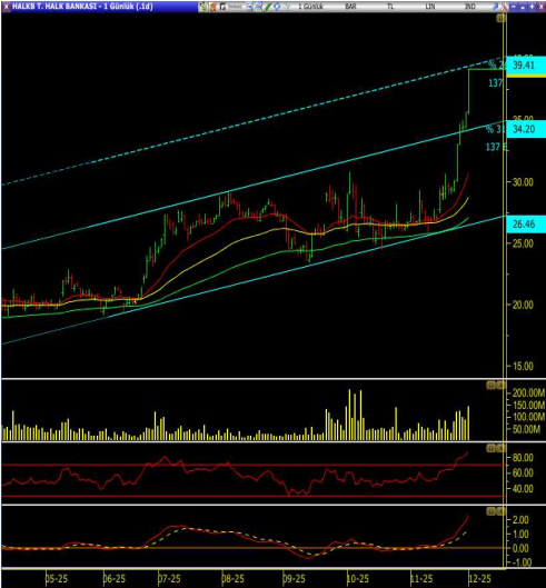 Genel olarak 34.20 bölgesi kritik savunma hattı konumunda. Bu seviyenin kırılması durumunda ise, hisse yeniden 26.46 seviyesine kadar geri çekilebilir.
