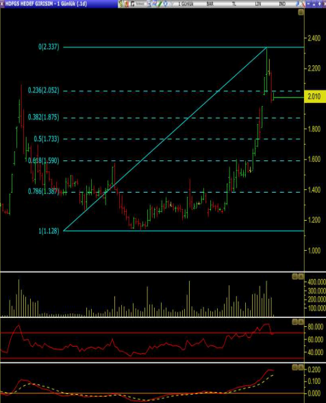 • 1.26 seviyesinden aldığı destek ile yükselen hisse, 2.33 seviyesini test etmesinin ardından geri çekiliyor.