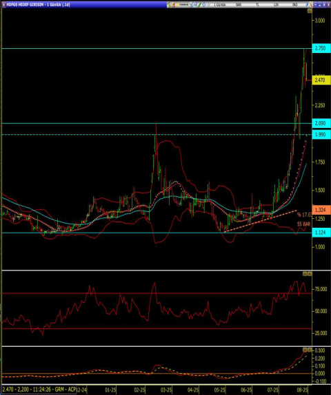 • Bu seviyenin üzerine yerleştiği takdirde şimdiye kadar test ettiği hem de bollinger üst banda denk gelen en yüksek seviye olan 2.75 seviyesine doğru yükselişlerin devamını görebiliriz.