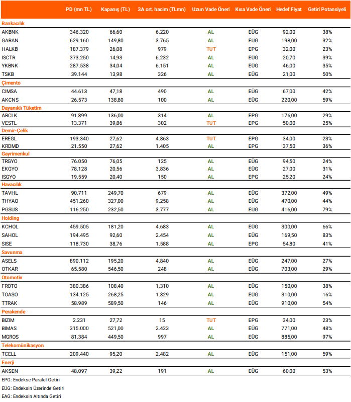 Endeksin yeni güne hafif alıcılı başlamasını bekliyoruz. Endekste yukarı yönlü hareketlerde 11.250-11.350 bölgesi endeksin hedef aralığı olarak izlenecektir. Gün içerisinde yaşanılabilecek düşüşlerde ise 11.100-11.000 bölgesi endeksin destek aralığı olarak takip edilmelidir.