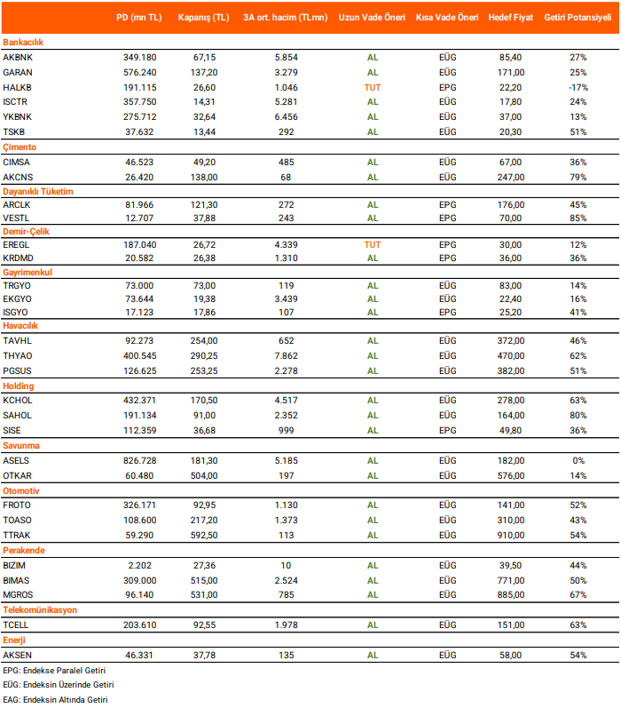 Endeksin yeni güne yatay başlamasını bekliyoruz. Endekste yukarı yönlü hareketlerde 10.800 seviyesi endeksin hedef seviyesi olarak izlenecektir. Gün içerisinde yaşanılabilecek düşüşlerde ise 10.400 seviyesi endeksin destek seviyesi olarak takip edilmelidir.