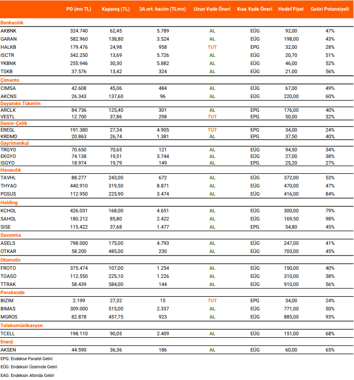 Endeksin yeni güne yatay başlamasını bekliyoruz. Endekste yukarı yönlü hareketlerde sırasıyla 10.800 ve 10.900 seviyeleri endeksin hedef seviyeleri olarak izlenecektir. Gün içerisinde yaşanılabilecek düşüşlerde ise 10.600-10.500 bölgesi endeksin destek aralığı olarak takip edilmelidir.