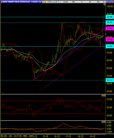 • Olası geri çekilmelerde ise bollinger üst banda denk gelen 87.50 destek seviyesinde mevcut pozisyonlar korunabilir.