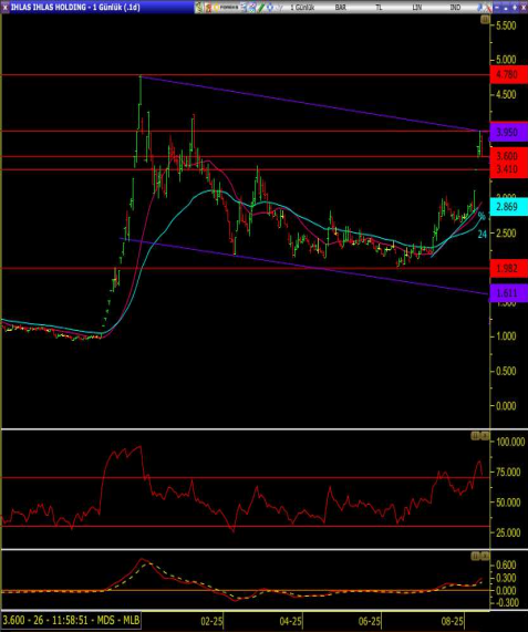 • Geri çekilmelerin devamı durumda 3.57 destek seviyesinde mevcut pozisyonlar korunabilir.