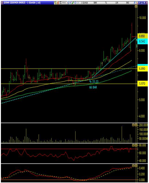 • Hisse yükselen trend üzerinde konumu korur ve tepki alır ise 9.70 seviyesi yeniden test edilmek üzere takip edilebilir.