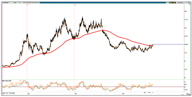 Hissede uzun süredir 233 günlük üssel ortalamasının altında devam eden fiyatlamanın sonlandığını görmekteyiz. 9.58 üzerinde oluşacak kapanışlar da bu fiyatlamayı teyit eder nitelikte. Dolayısıyla Karel hissesinde teknik olarak pozitif tarafa geçmiş bulunmaktayız. Olumlu senaryo eşliğinde kısa vadeli strateji belirleyelim;