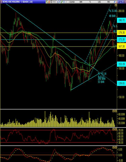 • 141 seviyesinden aldığı destek ile düşen direncini kıran hisse 190.50 seviyesine kadar yükseliyor.