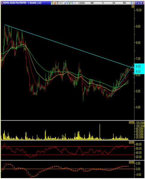 • Orta vadeli MACD ’in de yönünü aşağıya çevirmek üzere oluşuna karşı temkinli olunmalı, destek seviyeleri takip edilmelidir. 6.18 seviyesi ilk destek ve stoploss olarak izlenebilirken bu seviyenin kırılması halinde satış baskısı etkisini artıracaktır.