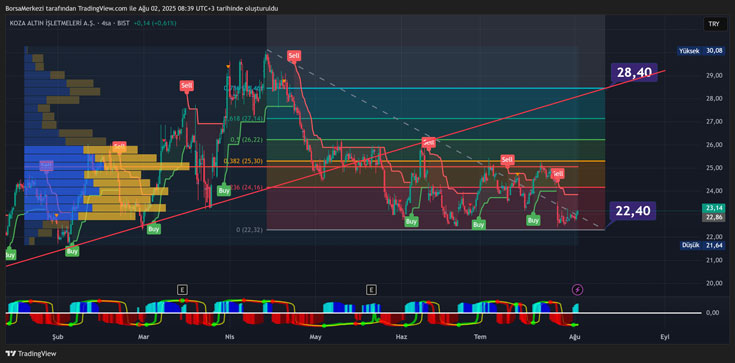 KOZAL (KOZA ALTIN) hisse senedi 23,14 TRY seviyesinde işlem görüyor ve günlük olarak %1,22 artmış durumda. Teknik göstergeler “Güçlü Satış” sinyali verirken, hareketli ortalamalar da “Satış” yönünde. Evet, kötü haber!