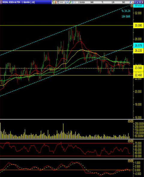 • Kısa vadeli yükselen kanal içerisinde hareket eden hisse 29.92 seviyesinden gelen satış baskısı ardından kanalın alt bandını kırarak önemli destek seviyelerine çekiliyor.