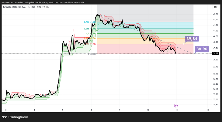 TRALT Türk Altın İşletmeleri A.Ş. hissesi, BİST’te 39,02 TL seviyesinden işlem görürken %0,91 oranında değer kaybıyla günü tamamladı. Teknik analiz göstergeleri incelendiğinde, hisse senedinin kritik destek ve direnç noktaları arasında konumlandığı gözlemleniyor. Özellikle 37,88 TL ve 43,26 TL seviyeleri önemli fiyat bölgeleri olarak öne çıkarken, yatırımcılar bu aralıktaki hareketleri yakından takip ediyor.