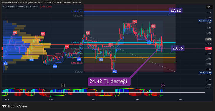 İşlem hacminde son 24 saatte 93,27 milyon adetlik gerçekleşme yaşanırken, günlük bazda %8,63’lük hacim daralması gözlemlendi. Haftalık perspektiften %7,18’lik hacim artışı yatırımcı ilgisinin devam ettiğini gösterse de, aylık %47,99’luk ciddi hacim düşüşü dikkat çekici. Pivot noktası 24,53 TL seviyesinde belirlenen hisse için Williams %R göstergesi -87,16 ile derin aşırı satım bölgesinde konumlanmış durumda. 26 TL’den sert düşüş süpertrende de yansıdı ve bu altın fiyatları çıkmasına rağmen gerçekleşti!