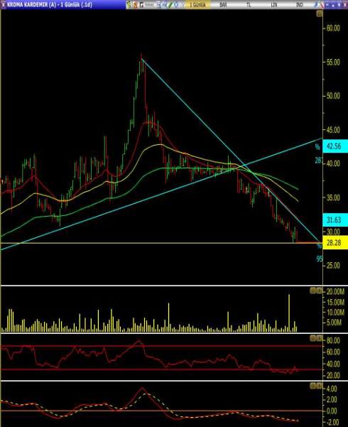• Uzun vadeli yükselen trend içinde ilerleyen hisse, 56.35 seviyesini test etmesi ardından satış baskısı ile beraber 28.28 desteğine kadar çekiliyor.