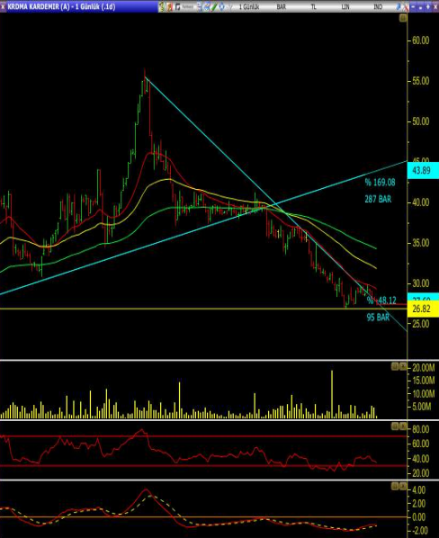 • Yukarı yönlü hareketin güç kazanabilmesi için öncelikle 28 TL direncinin, ardından düşen trend çizgisinin üzerine atılması gerekiyor.