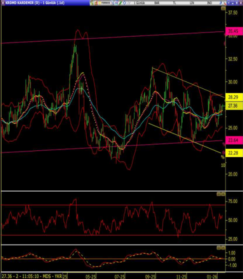 Olası geri çekilmelerin oluşumu durumunda bollinger orta banda karşılık gelen 26.88 seviyesinde mevcut pozisyonlar korunabilir.