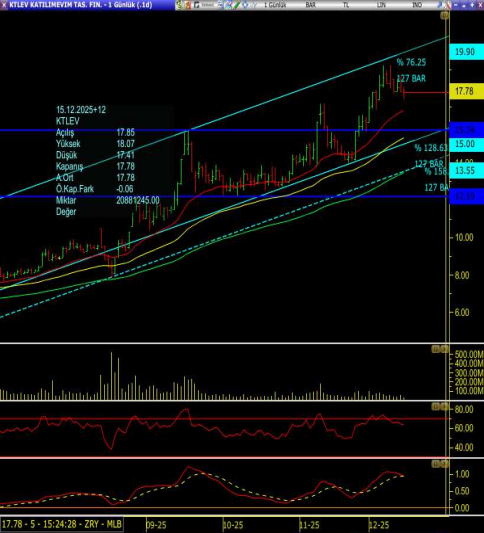 Ancak kısa ve orta vadeli göstergelerin de aşırı alım bölgesinden dönüyor olmasına bağlı geri çekilme hareketi karşımıza çıkıyor. Aşağı yönlü riskler açısından bakıldığında, fiyatın kısa vadede 15.74 TL psikolojik desteğini test etme olasılığı yüksek.