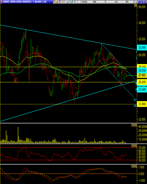 • Dolayısıyla 26.60 seviyesi ilk destek ve stoploss olarak takip edilebilir. Bu seviye üzerinde yeni alım stratejileri yapılabilir. Ancak kırılması halinde satış baskısı etkisine karşı temkinli olunmalı ve destek seviyeleri izlenmelidir.