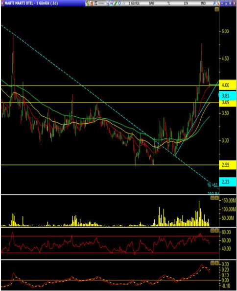 • Yukarı yönlü hareketin kalıcı olması için 4.00 üzerinden hacme bağlı tepki alımlarının gelmesini bekleyebiliriz.