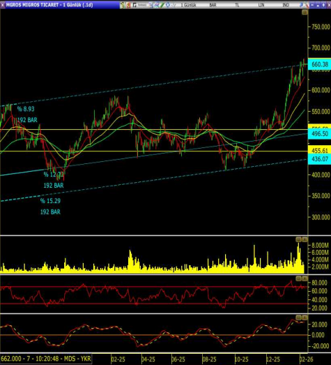 636-610 bandı kısa vadede kritik destek konumunda. Bu seviyenin kırılması halinde, ilk etapta 496.50 desteğine kadar geri çekilmeler görülebilir.
