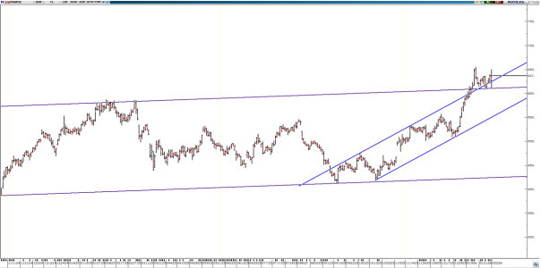 Günlük takip listemizde de yer verdiğimiz hissede, önceki günkü düzeltme hareketinin yükselen kanalın üzerinde kapanışla tamamlanması, güçlü teknik görünümün korunduğunu göstermektedir. Aynı zamanda tüm ağırlıklı ortalamaların üzerinde fiyatlanma, pozitif görünümü desteklemeye devam etmektedir. Yükselişin devamı durumunda 700 direncinden olası bir düzeltme hareketi gelebilir. Olası geri çekilmelerde ise kısa vadeli yükselen kanalın üst bandı olan 625 seviyesi destek olarak takip edilebilir. Mevcut seviyelerden açılacak pozisyonlarda 630 stop-loss alınmak koşulu ile 685–700 bölgesi kısa vadeli satış hedefi olarak izlenebilir.
