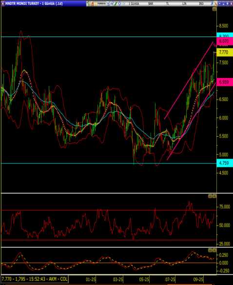 • Bu seviyede tutunamadığı takdirde bollinger üst banda doğru (7.51) satış baskısı görülebilir.