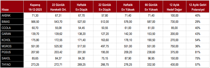 Haftalık En Yüksek Seviye: Haftalık bazda direnç noktası olarak değerlendirilebilir. Kapanış seviyesinin bu seviyeye yakın olması, hissede yukarı yönlü potansiyelin devam edebileceği şeklinde yorumlanabilir.