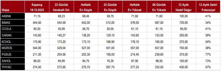 Haftalık En Yüksek Seviye: Haftalık bazda direnç noktası olarak değerlendirilebilir. Kapanış seviyesinin bu seviyeye yakın olması, hissede yukarı yönlü potansiyelin devam edebileceği şeklinde yorumlanabilir.