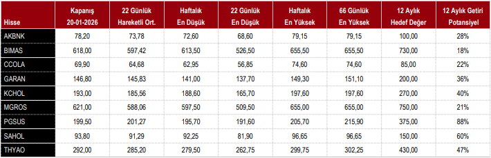 Haftalık En Düşük Seviye: Öncelikli destek noktası olarak izlenebilir. Ayrıca, 22 Günlük En Düşük Seviye aylık bazda destek olarak takip edilebilir