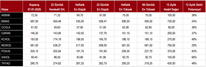 Haftalık En Düşük Seviye: Öncelikli destek noktası olarak izlenebilir. Ayrıca, 22 Günlük En Düşük Seviye aylık bazda destek olarak takip edilebilir