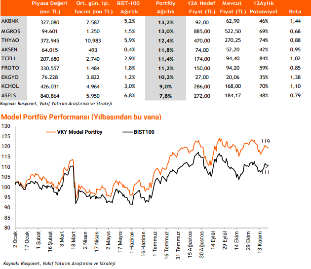 • Koç Holding: Geniş ve çeşitlendirilmiş portföy yapısı, güçlü nakit pozisyonu ve yükseliş potansiyeline bağlı olarak Koç Holding’i model portföyümüzde tutmaya devam ediyoruz.