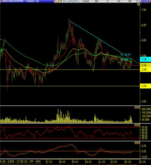 Hacmin düşük olması güçlü trend başlangıcı olmadığını gösteriyor. Özetle, 5,04 üzeri tutunma kısa vadeli dengeyi korurken, alçalan trend kırılmadan güçlü yükselişten söz etmek zor; bu nedenle yön tayini için hacimli bir kırılım izlenmeli.