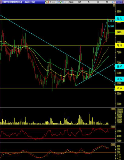 • Yükseliş trendinin başında hacim artışı dikkat çekse de, son günlerde fiyat 91 TL’ye yaklaşırken hacmin azaldığı görülüyor.