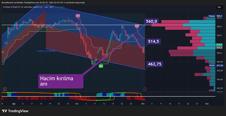 OTKAR hisse senedi 514,5 TL seviyesinde işlem görürken teknik olarak “Sat” sinyali veriyor. Hareketli ortalamalar da satış yönünde. RSI değeri 44,29 ile nötr bölgede ve momentum göstergeleri negatif (-25,5).