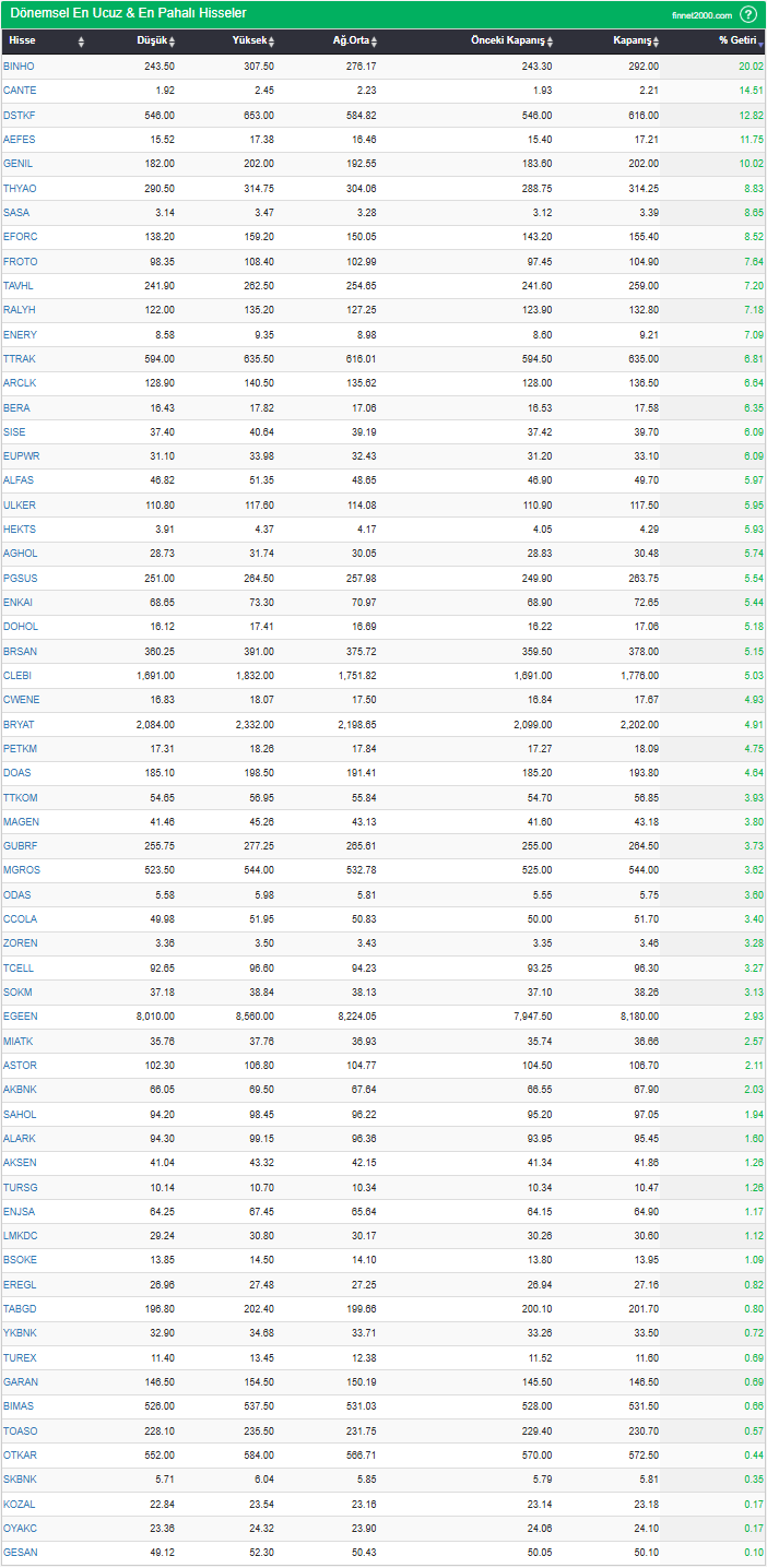 Hisse senedinin seçilen baza göre bağıl getirisinin gösterildiği tablodur. “Pahalı hisseler” tablosunda seçilen baza göre bağıl getirisi pozitif olan hisseler görüntülenir. Baz getiriye göre ucuz ve pahalı hisselerin listelenmesi, hem endeks bazında hem de sektör bazında hızlı hareket eden yada yavaş hareket hisseleri görebilmenizi sağlar.