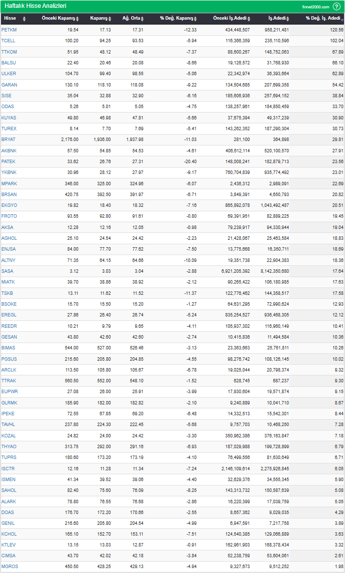 BIST 100’de son 1 haftada para çıkışı olan hisse senetleri: