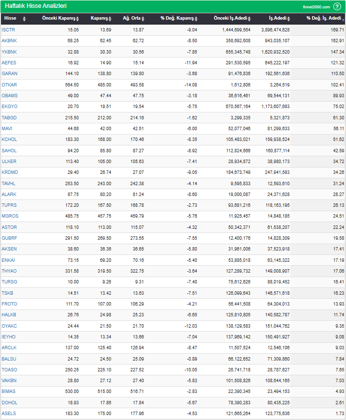 BIST 100’de son 1 haftada para çıkışı olan hisse senetleri: