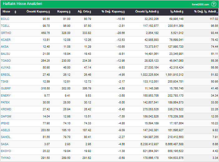 BIST 100’de son 1 haftada para çıkışı olan hisse senetleri: