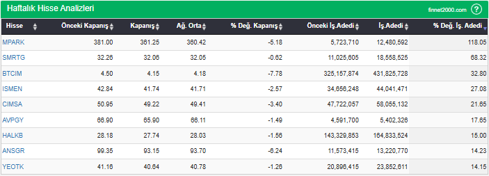 BIST 100’de son 1 haftada para çıkışı olan hisse senetleri: