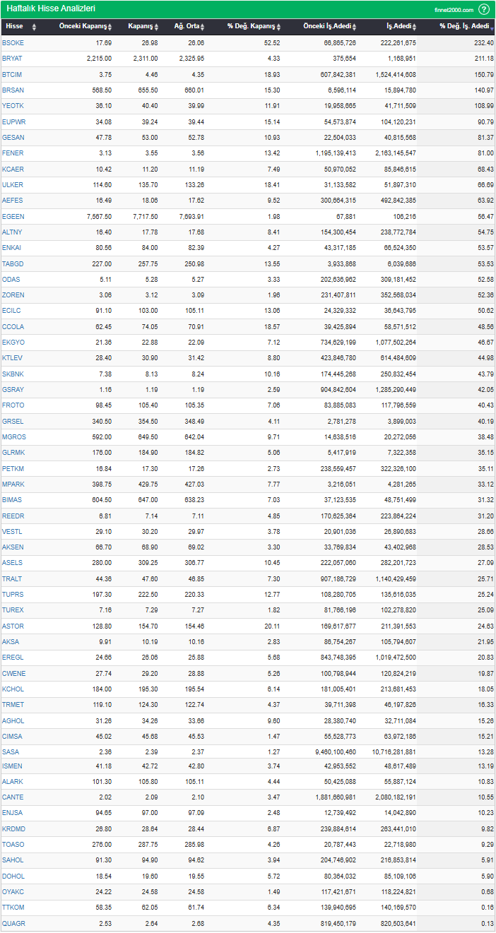 BIST 100’de son 1 haftada para girişi olan hisse senetleri: