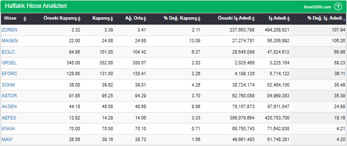 BIST 100’de son 1 haftada para girişi olan hisse senetleri: