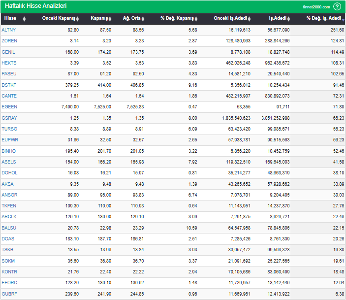 BIST 100’de son 1 haftada para girişi olan hisse senetleri: