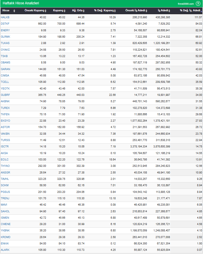 BIST 100’de son 1 haftada para girişi olan hisse senetleri: