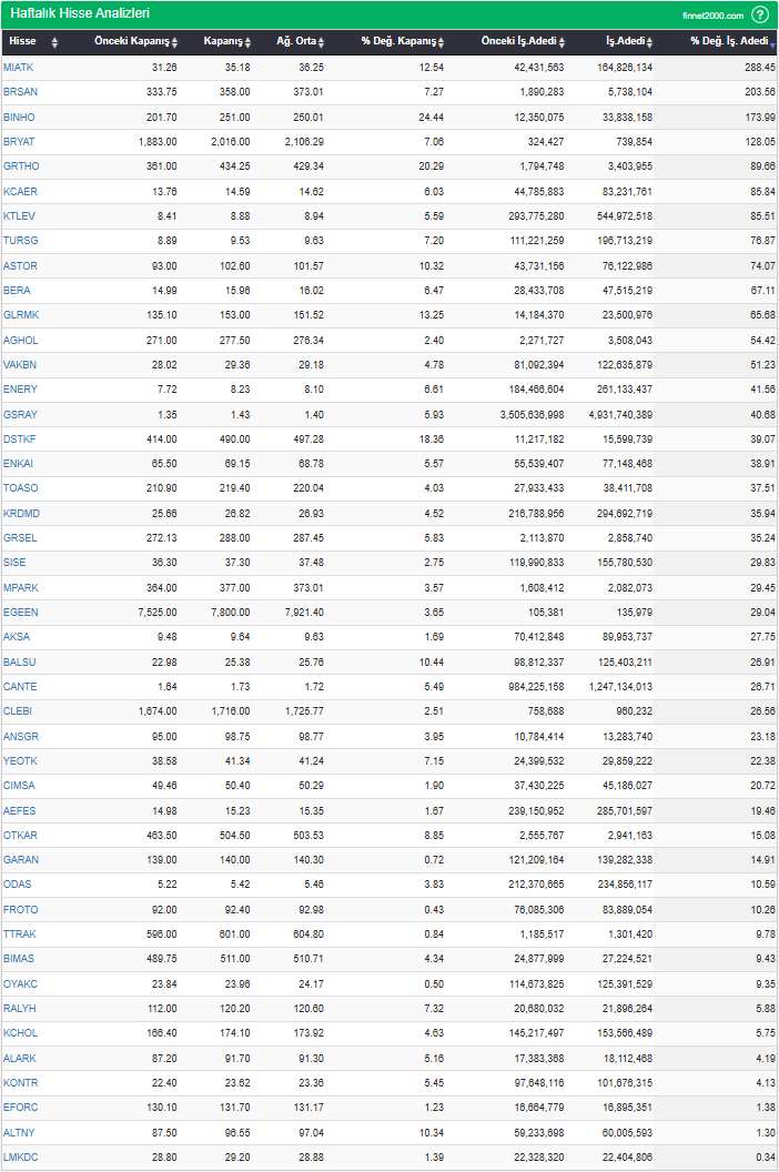 BIST 100’de son 1 haftada para girişi olan hisse senetleri: