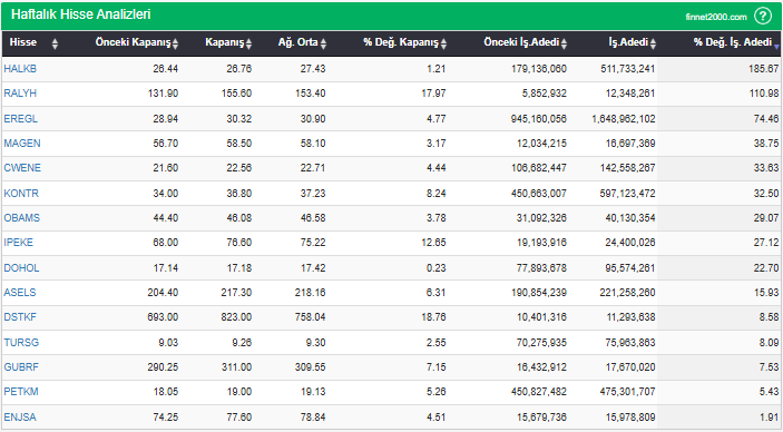 BIST 100’de son 1 haftada para girişi olan hisse senetleri: