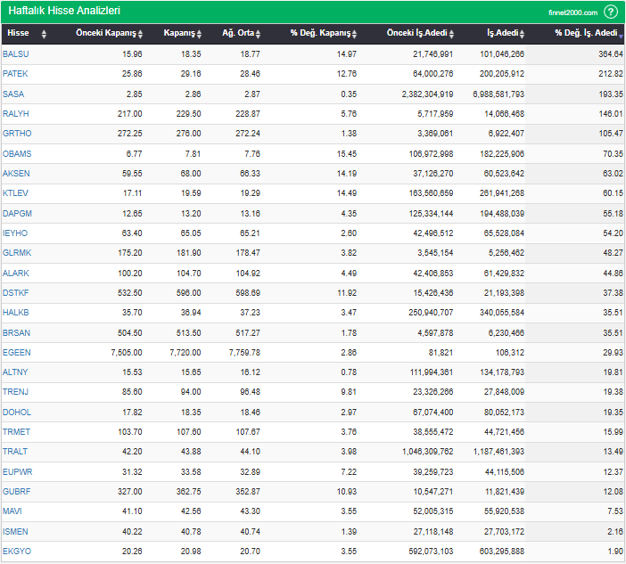 BIST 100’de son 1 haftada para girişi olan hisse senetleri: