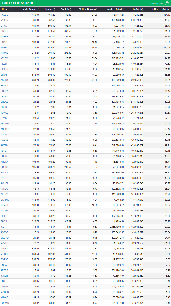 BIST 100’de son 1 haftada para girişi olan hisse senetleri: